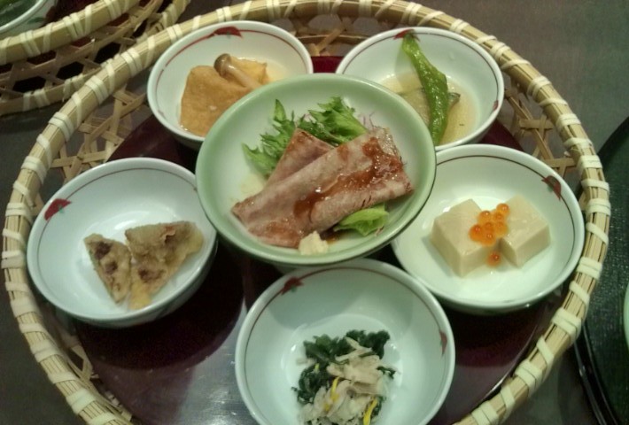 お茶とお茶請けです。 和牛鍋です。 京籠膳の小鉢です。 京籠膳のメインです。 老舗の高級すきやき・しゃぶしゃぶのお店ですが、 ランチなので比較的安いお値段で牛肉を堪能出来ます。 食事の前にお茶とお茶請けが出てくるのが嬉しいですね。 ちなみにお茶請けはわらびもちです。 |