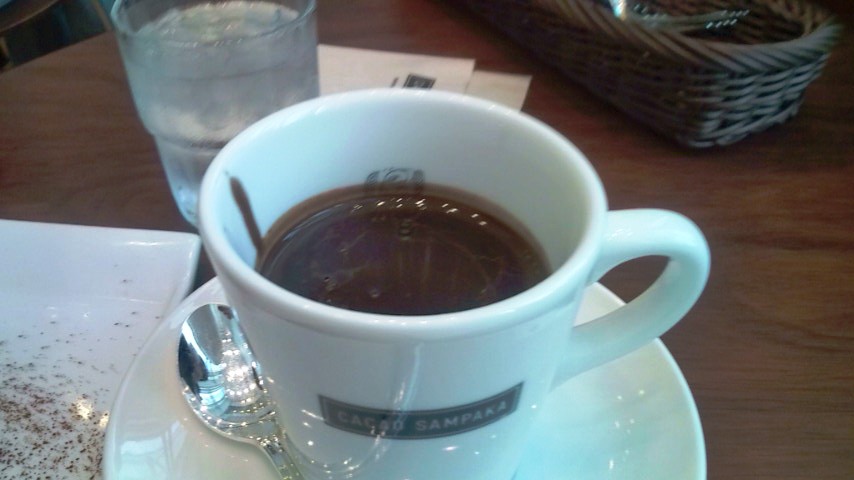 カテランです。 コルテスです。 ベリージュースです。 タルタです。 ムラングシャンティーです。 カテランはカカオ70%のホットチョコレートで、 コルテスはカカオ80%のホットチョコレートです。 カテランはココアみたいな感じですが、コルテスはコクある 本当のホットチョコと言う感じがします。 甘すぎず、とても飲みやすく美味しいです。 飲むなら、コルテスがオススメです。 ムラングシャンティーは謎のチョコで横にマカロンが2個付いています。 タルタ(グアランダ)は棒状のチョコケーキで ベリージュースは甘酸っぱくて飲みやすく、こちらはケーキセットです。
