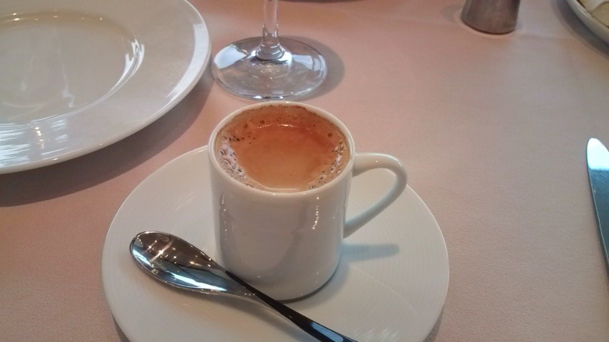 デザートピザです。 アイスティーです。 ホットティーです。 エスプレッソです。 高島屋なので雰囲気がとても良いです。 写真のピザはエスプレッソがかかっているのですが、 甘いピザは初めて食べたので不思議な感じでしたが、 パリッとした生地と甘苦いソースが合って美味しかったです。