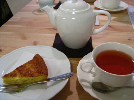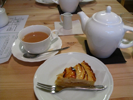 それは、改めてお茶をするから我慢したからでした。 もちいどの商店街としもみかど商店街の間を曲がってすぐにある 「西寺林スイーツ」さんへ母と行って来ました。 以前紹介したばかりなのですが、母だけ行って羨ましかったので 連れて行ってもらいました。 入り口です。外から音楽が流れています。 茶葉のサンプルです。 玉ねぎとチーズのタルトセット。 リンゴのタルトのセット。 お店の中はゆったりした空気が流れていて落ち着いた雰囲気です。 フレーバーティーが何種類もあるので、実際に茶葉の香りを試して好きな紅茶を選ぶことができます。 私はキャラメルティーとリンゴのタルト、 母はチェリーピンクティーと玉ねぎとチーズのタルトのセットを注文しました。 リンゴのタルトはリンゴがシャリシャリしてさっぱりしていました。 玉ねぎとチーズのタルトはご飯のおかずでもいけそうなしっかりした味でした。