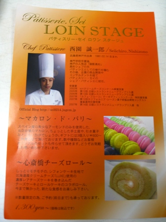 店内で食べたマカロン お土産マカロン チラシの表か裏 チラシの裏か表 この頃はブログのブの字も始める予定が無かったので写真はこれだけです。 お茶できるところが無いかとウロウロしていたら、店頭に色とりどりの丸い塊達が目にとまりました。 それがマカロンとの出会いです。 店内で食べる場合は好きなマカロンを3種類選んで食べることが出来ます。 マカロンって見た目も食べた瞬間も衝撃的ですよね。 青色なんて特に驚きました。 ちなみにこのお店は心斎橋チーズロールも有名みたいです。 以前テレビで紹介されていました。 それでもマカロンの魅力に負けてしまいました。 PR